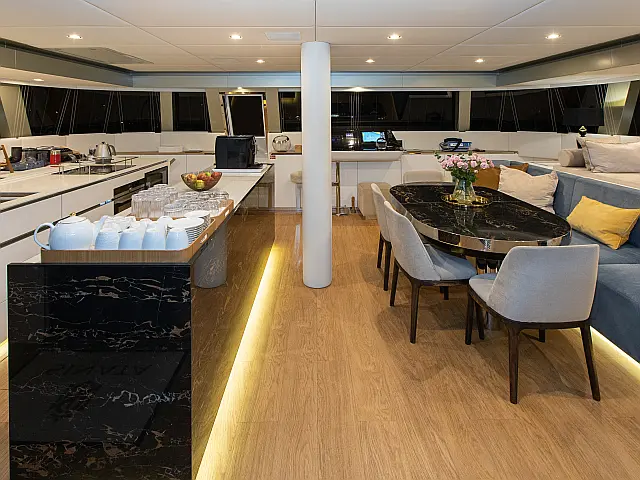 Teak deck, Cockpit cushions, Bimini, Outboard engine, Refrigerator, Sprayhood, Teak Cockpit, Dinghy, Heating, Generator, Water maker, Cockpit speakers, Wi-Fi & Internet, Electric toilet, Ice maker TV, Stand up paddle Bow thruster, Radar Lazy bag, Lazy jack