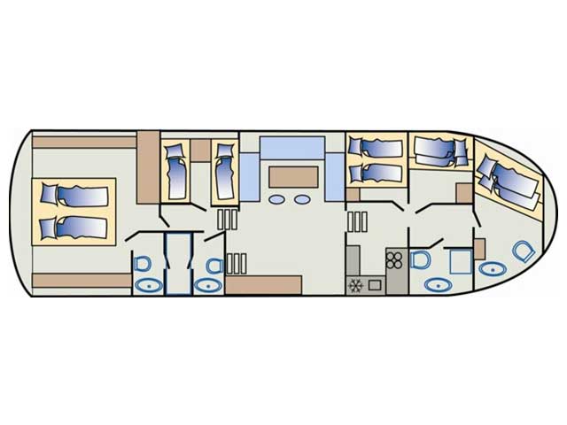 5 double cabins, 3 bathrooms, 4 toilets and a roomy lounge will provide for enough space