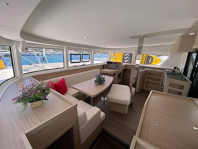 Cockpit cushions, Cockpit speakers, Coffee maker, Inverter, Generator, Teak Cockpit, Electric winches, Refrigerator, Electric toilet, Air condition, Solar Panels, Water maker Autopilot, Chart plotter