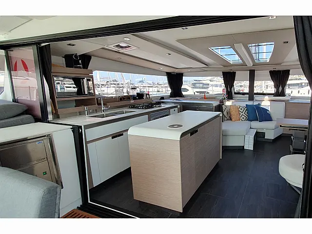 Stand up paddle, Radio-CD player, TV Dishwasher, Cockpit cushions, Generator, Heating, Water maker, Coffee maker, Washer/Dryer, Dinghy, Electric winches, Inverter, Electric toilet, Bimini, Cockpit speakers, Teak Cockpit, Refrigerator, Hydraulic gangway, Barbecue grill in cockpit Underwater lights Autopilot, Chart plotter, Radar Lazy bag, Lazy jack