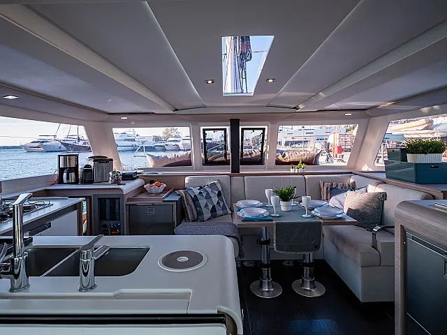 Refrigerator, Cockpit speakers, Electric winches, Dinghy, Air condition, Generator, Inverter, Electric toilet, Solar Panels, Water maker, Outboard engine, Cockpit cushions, Teak Cockpit Autopilot, Chart plotter TV, Snorkeling equipment Gennaker, Lazy jack
