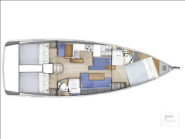 Cockpit speakers, Cockpit cushions, Refrigerator, Teak Cockpit, Heating, Swimming platform, Holding tank, Sprayhood, Dinghy, Bimini, Solar Panels, Inverter Bow thruster, Chart plotter Radio-CD player