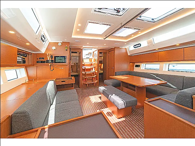 Autopilot, Chart plotter in cockpit, Bow thruster Radio-CD player Solar Panels, Dinghy, Cockpit cushions, Bimini, Air condition, Generator, Refrigerator, Sprayhood, Electric winches, Cockpit speakers, Electric toilet, Water maker