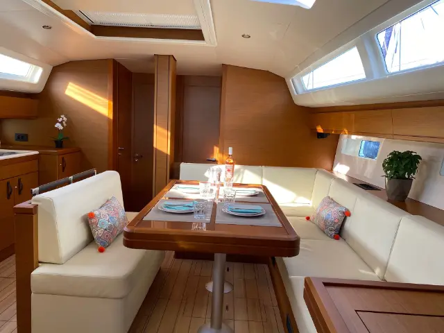 Inverter, Generator, Coffee maker, Sprayhood, Refrigerator, Heating, Air condition, Dinghy, Outboard engine, Bimini, Teak Cockpit, Hydraulic gangway, Electric toilet Bow thruster, Radar, Chart plotter in cockpit, Chart plotter, Autopilot Radio-CD player