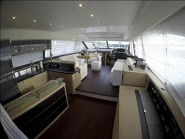 The Prestige 620S, designed by Garroni Design in collaboration with the Prestige design department, offers an original advance in the world of coupé motor yachts: the SPORTFLY concept.