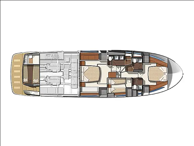 The Prestige 620S revisits all the concepts that have made the PRESTIGE 620 a success, including a powerful and secure hull designed by Michael Peters, the choice of a VOLVO IPS 950 propulsion pod and sophisticated construction methods.