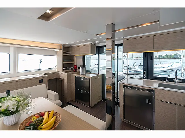 Teak Cockpit, Swimming platform, Electric winches, Air condition, Generator, Inverter, Water maker, Dinghy, Coffee maker, Dishwasher, Ice maker, Refrigerator, Cockpit cushions, Bimini, Wi-Fi & Internet, Cockpit speakers Autopilot Radio-CD player, Snorkeling equipment