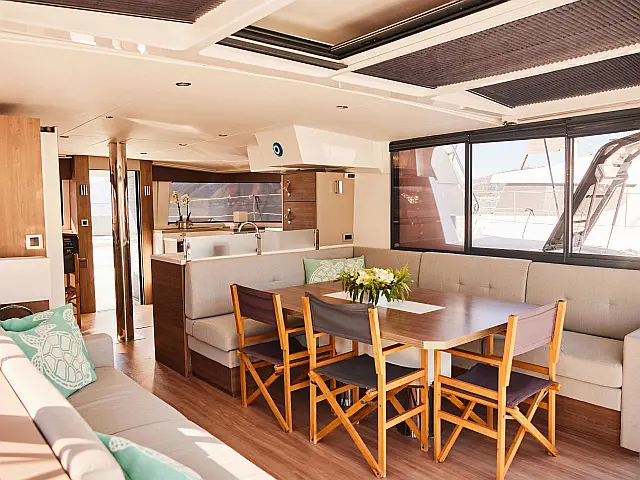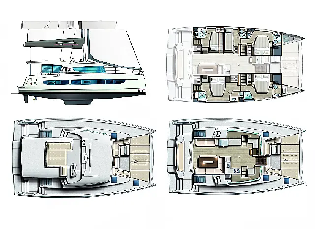 Autopilot, Chart plotter in cockpit Radio-CD player Refrigerator, Cockpit cushions, Bimini, Dinghy, Hydraulic gangway, Solar Panels, Generator, Air condition, Inverter, Water maker