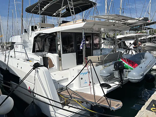 Lazy bag Autopilot, Chart plotter, Chart plotter in cockpit Radio-CD player, Snorkeling equipment Cockpit speakers, Air condition, Heating, Bimini, Coffee maker, Refrigerator, Solar Panels, Generator, Dinghy, Water maker, Inverter, Electric toilet, Electric winches, Hydraulic gangway, Sprayhood, Cockpit cushions, Outboard engine
