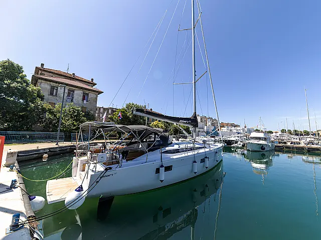 Swimming platform, Bimini, Refrigerator, Dinghy, Sprayhood, Heating, Inverter, Cockpit speakers, Solar Panels, Holding tank, Air condition, Wi-Fi & Internet Autopilot, Chart plotter, Bow thruster