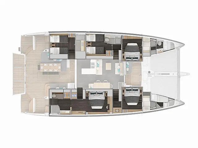 Cockpit cushions, Cockpit speakers, Coffee maker, Inverter, Outboard engine, Generator, Dinghy, Electric toilet, Teak Cockpit, Holding tank, Refrigerator, Air condition, Solar Panels, Water maker, Hydraulic gangway, Flybridge Chart plotter, Bow thruster, Chart plotter in cockpit Stand up paddle, Snorkeling equipment
