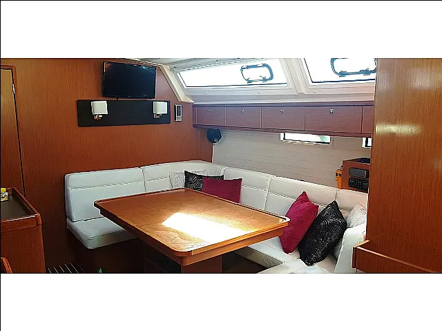 Autopilot, Bow thruster, Chart plotter in cockpit, Radar, Chart plotter Sprayhood, Dinghy, Outboard engine, Inverter, Electric toilet, Holding tank, Cockpit speakers, Bimini, Refrigerator, Hydraulic gangway, Coffee maker, Solar Panels, Cockpit cushions TV, Snorkeling equipment
