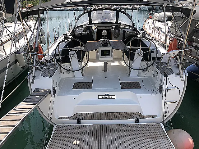 Charter this beautiful Bavaria 46 ” Built year 2017 “Leonidas “ The Bavaria 46 Cruiser is an excellent choice for demanding customers. The cockpit is both spacious and functional. with folding table and a twin steering wheel system offer easier access to a gangway. At the Cockpit you will have two steering weel carbon, Cockpit cushions, the spray hood and Bimini will protect your crew from the sun, wind and the rain. A furling mainsail and a roll Genoa improve yachts sailing performance. Have automatic pilot, bow thruster, and Gps Plotter at the cockpit and inside. Have also radio CD mp3 radio with Bluetooth and speakers on the inside and outside and two VHF the one portable. It has generously appointed interior with three bathrooms and three electrics toilets. A full-sized two refrigerators 160L and 110L with freezer, and surprisingly handy storage compartments. Also have sunshade and mosquito screen on hatches in the salon and the cabins also. The cabins offer excess light and great air circulation. Plenty of room and storage, with wide beds characterize four double bed cabins. In the salon have 24″ led tv 12v, the kitchen is fully equipped with a gas stove and oven, and all the cooking utensils. Also There is microwave and a Coffee maker & filter machine , milk shaker machine, (both of the coffee machines working with inverter ). There is also wireless charter adapter and USB socket in the salon, and USB socket all the cabins to charge your mobile phone, laptop etc and Fans in salon and cabins and ligths the sea. Have also Inverter 12v to 220v 2.000 watt , Solar panels 300 watts and led on the Bimini for a romantic dinner. The boat has all the rescue means required by law. With proven performance, you’ll have an excellent charter experience with this yacht. The Leonidas is in great condition, and available for bare boat renting.