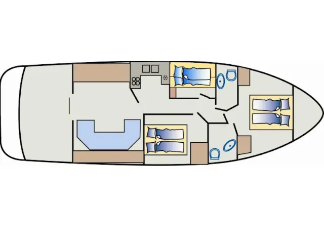 Two beautiful bathrooms provide spaciousness as well. Two Caterpillar diesel engines provide