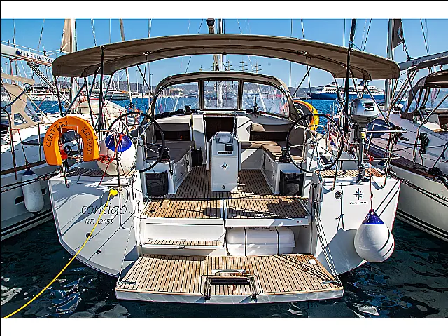 Dinghy, Outboard engine, Bimini, Cockpit cushions, Sprayhood, Teak Cockpit, Refrigerator Snorkeling equipment Chart plotter, Bow thruster, Autopilot