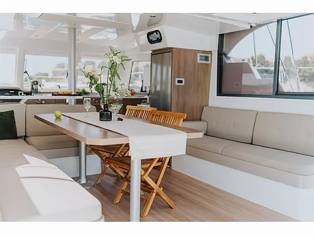 TV Air condition, Coffee maker, Cockpit cushions, Dinghy, Electric winches, Electric toilet, Ice maker, Holding tank, Inverter, Solar Panels, Sprayhood, Teak Cockpit, Heating Chart plotter in cockpit Lazy bag, Lazy jack