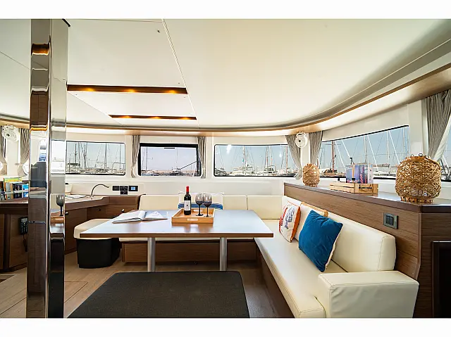 Dinghy, Outboard engine, Cockpit cushions, Teak Cockpit, Air condition, Refrigerator, Electric toilet, Electric winches, Generator, Hydraulic gangway, Water maker Lazy jack Snorkeling equipment Chart plotter, Autopilot