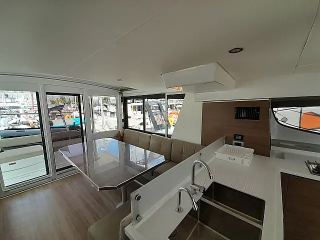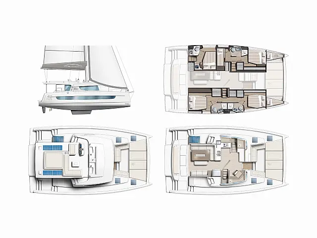 Lazy bag, Lazy jack Autopilot, Chart plotter, Chart plotter in cockpit Cockpit speakers, Electric toilet, Air condition, Heating, Bimini, Coffee maker, Refrigerator, Generator, Solar Panels, Dinghy, Sprayhood, Electric winches, Hydraulic gangway, Outboard engine, Water maker Snorkeling equipment, Radio-CD player