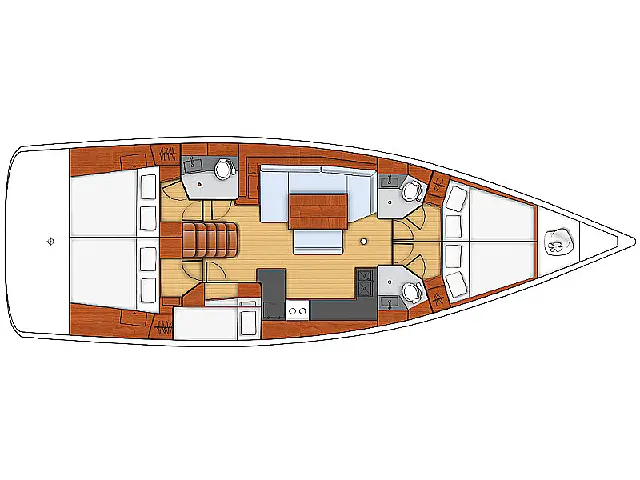 Our Oceanis 48 'Filomena' contains four double bed cabins plus one bunk bed cabin, three bathrooms and a nice spacious salon. Big cockpit with bathing platform is perfect for all sun lovers to get some bronze tan during the sailing through the Adriatic archipelago. The most popular sailing destinations in this part of Adriatic Sea are national park Kornati, nature park Telašćica and islands Dugi otok, Ugljan and Pašman.