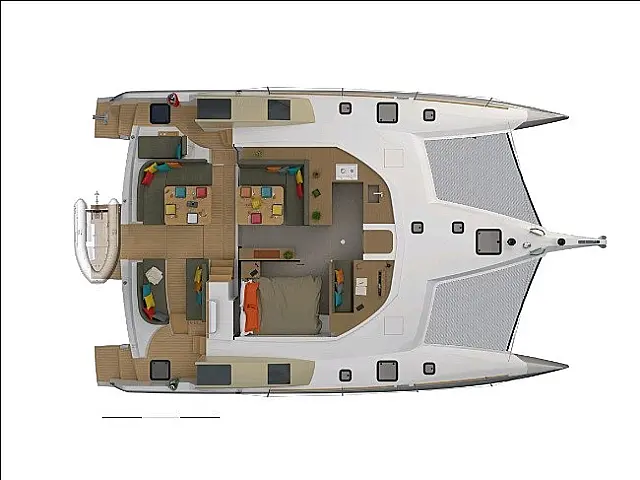 Autopilot, Chart plotter, Bow thruster, Radar Dinghy, Bimini, Holding tank, Inverter, Refrigerator, Solar Panels, Sprayhood Lazy bag Radio-CD player, DVD player, TV