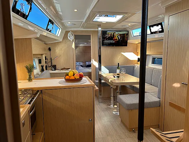 Heating, Cockpit speakers, Sprayhood, Solar Panels, Air condition Autopilot Radio-CD player, TV
