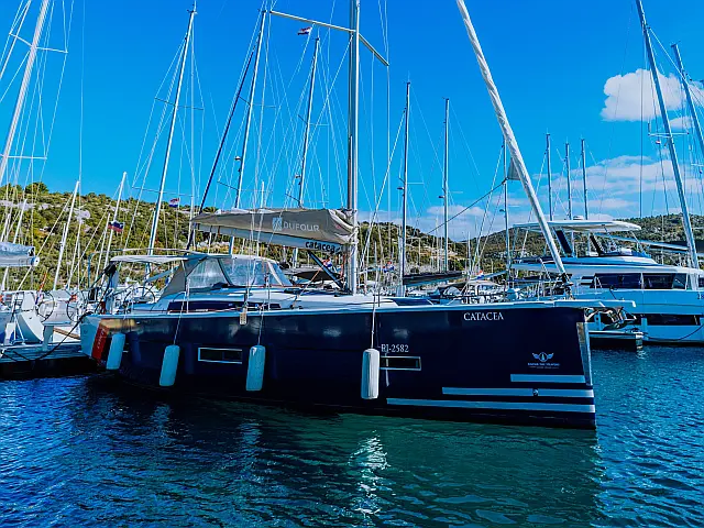 Generator, Air condition, Teak Cockpit, Sprayhood, Bimini, Outboard engine, Barbecue grill in cockpit, Solar Panels Bow thruster Lazy bag, Lazy jack