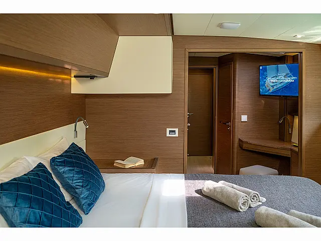 Stand up paddle, Snorkeling equipment Dinghy, Bimini, Sprayhood, Water maker, Generator, Air condition, Solar Panels, Cockpit cushions, Electric winches, Barbecue grill in cockpit, Refrigerator Lazy bag, Lazy jack Chart plotter, Autopilot, Radar