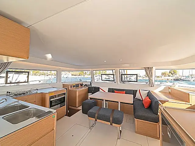 Lazy jack, Lazy bag Bimini, Refrigerator, Coffee maker, Holding tank, Air condition, Generator, Water maker, Inverter, Electric winches, Electric toilet, Dinghy, Cockpit cushions, Solar Panels, Cockpit speakers Chart plotter in cockpit, Chart plotter, Autopilot Snorkeling equipment