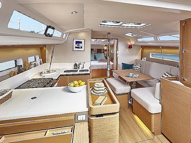 Cockpit cushions, Sprayhood, Bimini, Electric toilet, Refrigerator, Cockpit speakers, Solar Panels Chart plotter in cockpit, Bow thruster, Chart plotter, Autopilot Snorkeling equipment