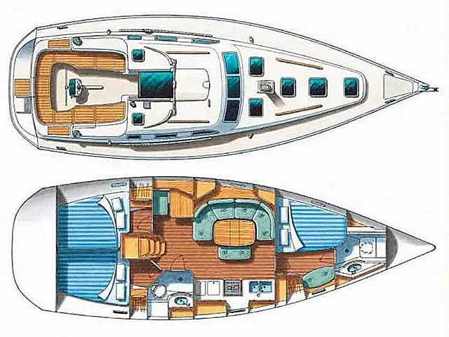 Cockpit speakers, Bimini, Swimming platform, Refrigerator, Sprayhood, Solar Panels Radio-CD player