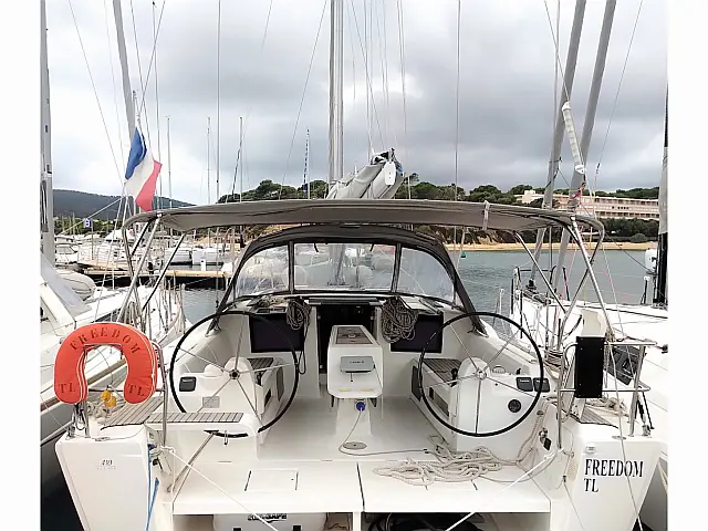 Chart plotter in cockpit, Autopilot, Bow thruster Bimini, Cockpit cushions, Sprayhood, Cockpit speakers, Dinghy, Coffee maker, Refrigerator Snorkeling equipment