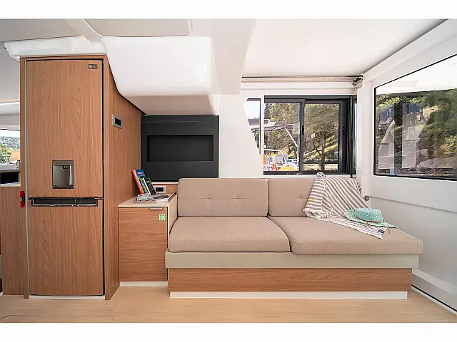 Lazy jack, Lazy bag Bimini, Barbecue grill in cockpit, Coffee maker, Air condition, Generator, Water maker, Dinghy, Solar Panels, Electric toilet, Wi-Fi & Internet, Refrigerator, Flybridge, Cockpit cushions, Cockpit speakers Chart plotter in cockpit, Chart plotter, Autopilot Stand up paddle, Snorkeling equipment