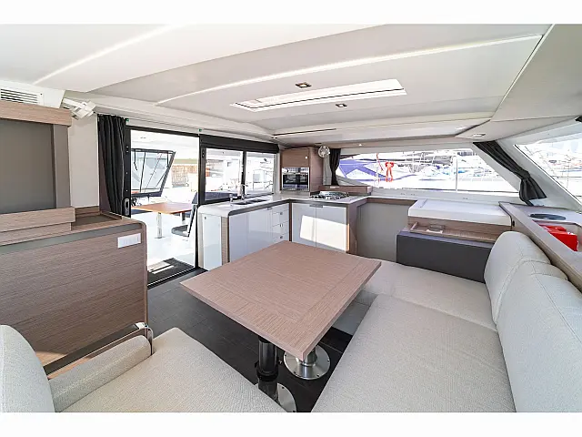 Lazy jack, Lazy bag Bimini, Refrigerator, Barbecue grill in cockpit, Coffee maker, Holding tank, Electric winches, Electric toilet, Dinghy, Cockpit cushions, Solar Panels, Cockpit speakers Chart plotter in cockpit, Chart plotter, Autopilot Stand up paddle, Snorkeling equipment