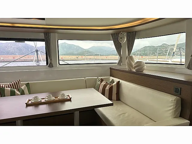 Lazy bag Autopilot, Radar, Chart plotter, Chart plotter in cockpit, Outside Steering Position TV, Snorkeling equipment, Radio-CD player, DVD player Cockpit speakers, Air condition, Heating, Bimini, Teak deck, Refrigerator, Generator, Dinghy, Outboard engine, Cockpit cushions, Teak Cockpit, Holding tank, Water maker, Inverter, Coffee maker, Flybridge, Electric winches, Electric toilet Railing net