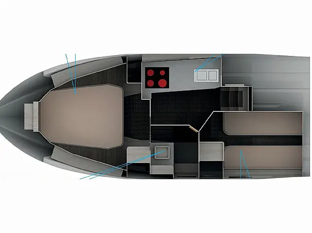 Refrigerator, Bimini, Cockpit cushions, Teak Cockpit, Air condition, Generator, Inverter Bow thruster, Chart plotter in cockpit