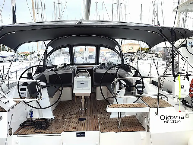 Autopilot, Bow thruster Radio-CD player, Snorkeling equipment Cockpit speakers, Bimini, Swimming platform, Dinghy, Sprayhood, Electric toilet