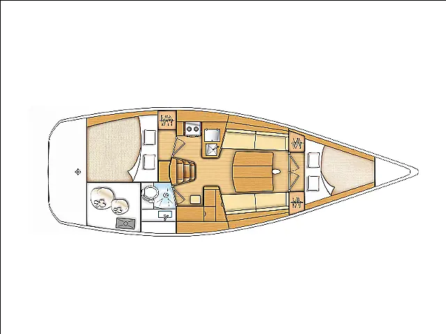 Refrigerator, Heating, Sprayhood, Cockpit speakers, Wi-Fi & Internet Lazy jack Chart plotter Radio-CD player