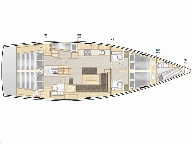Air condition, Generator, Water maker, Swimming platform, Dinghy, Sprayhood, Refrigerator, Cockpit cushions, Cockpit speakers Lazy bag, Lazy jack Snorkeling equipment Autopilot, Bow thruster, Chart plotter