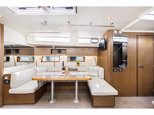 Air condition, Hydraulic gangway, Electric winches, Electric toilet, Solar Panels, Generator, Bimini, Cockpit cushions, Sprayhood, Dinghy, Outboard engine, Coffee maker, Refrigerator TV Chart plotter in cockpit, Autopilot, Bow thruster