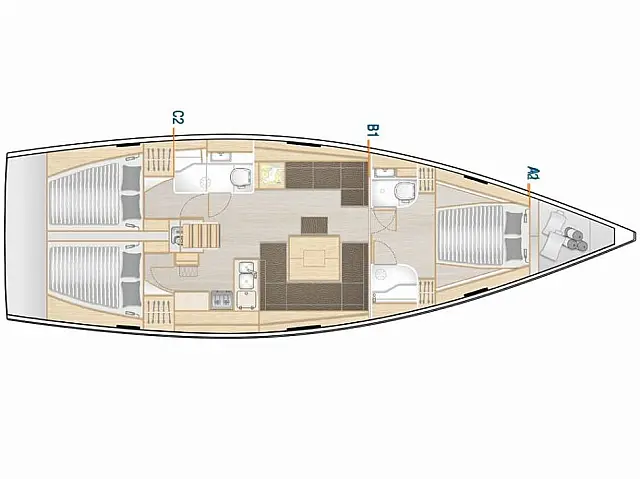 Service Pack (Monohulls - 3 cabins): 200.00 € per booking, Included: Outboard engine, bed linen - towels per person/week (up to 2 weeks): 0.00 € per booking, Obligatory Insurance (S/Y 44ft-48ft): 350.00 € per booking