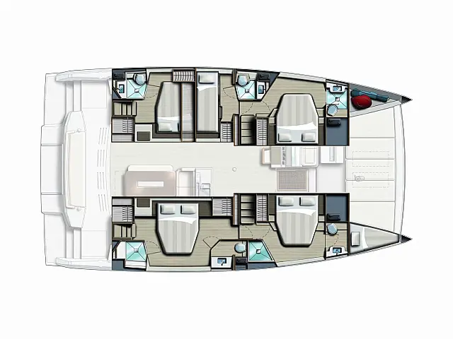 Damage waiver for skippered charters: 350.00 € per booking, FREE: Outboard Engine, Bed linen, towels, blankets, one set /cabin/week: 0.00 € per week, Including in the price: SUP x2, WiFi, Bathroom Amenities, Beach Towels: 0.00 € per booking, Skipper fees (plus his/her food) - obligatory: 210.00 € per night, Service pack Catamarans 43' and above: 400.00 € per booking