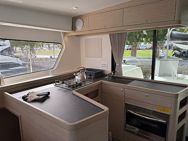 Autopilot, Chart plotter Cockpit speakers, Bimini, Hydraulic gangway, Cockpit cushions, Inverter, Dinghy, Electric toilet, Refrigerator, Air condition, Electric winches, Generator, Coffee maker, Water maker Snorkeling equipment