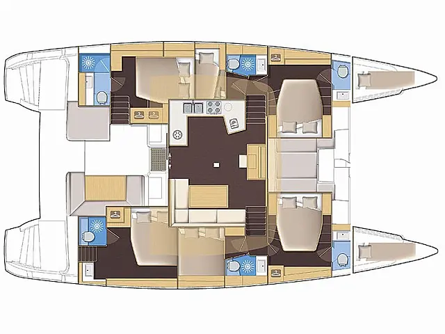 Air condition, Cockpit cushions, Refrigerator, Coffee maker, Dinghy, Electric toilet, Electric winches, Generator, Heating, Inverter, Ice maker, Outboard engine, Water maker, Wi-Fi & Internet, Cockpit speakers Autopilot, Chart plotter, Radar Lazy bag, Lazy jack Snorkeling equipment, Stand up paddle