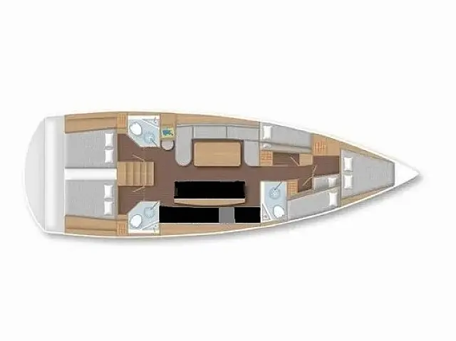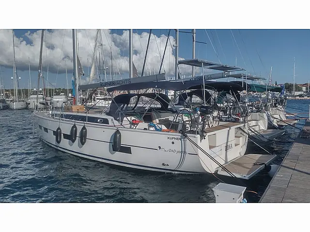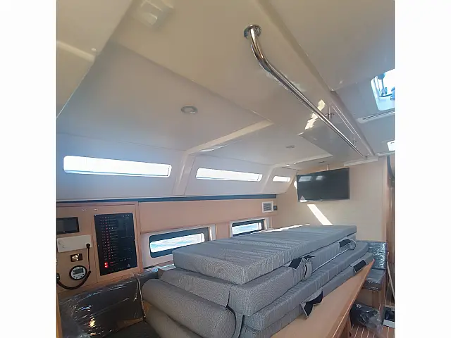 Bimini, Heating, Teak deck, Cockpit speakers, Teak Cockpit, Air condition, Refrigerator, Generator, Sprayhood, Holding tank, Cockpit cushions, Solar Panels, Outboard engine, Dinghy Autopilot, Bow thruster, Chart plotter in cockpit TV, Radio-CD player
