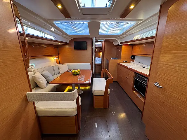 Cockpit speakers, Holding tank, Bimini, Cockpit cushions, Barbecue grill in cockpit, Dinghy, Sprayhood, Refrigerator, Air condition, Heating Radio-CD player, TV Autopilot, Bow thruster, Chart plotter in cockpit