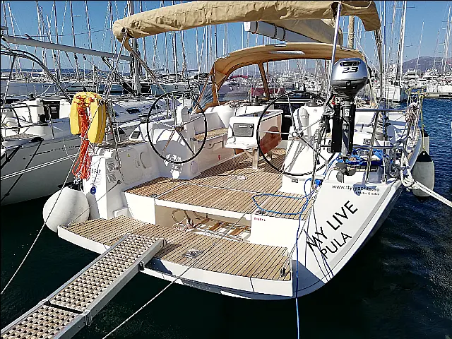 Refrigerator, Bimini, Outboard engine, Sprayhood Chart plotter in cockpit, Bow thruster