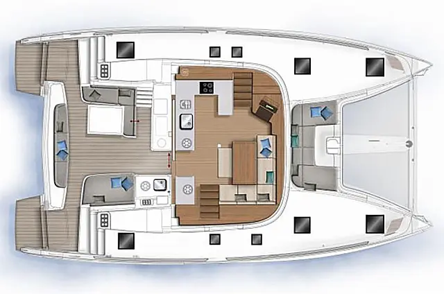 Refrigerator, Barbecue grill in cockpit, Bimini, Cockpit speakers, Cockpit cushions, Generator, Sprayhood, Outboard engine, Water maker, Electric toilet, Air condition, Heating Chart plotter, Autopilot Stand up paddle