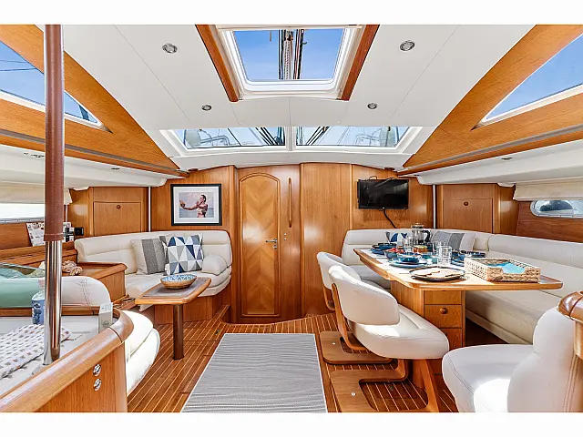 Autopilot, Chart plotter, Radar Bimini, Cockpit cushions, Cockpit speakers, Coffee maker, Refrigerator, Sprayhood Radio-CD player, TV