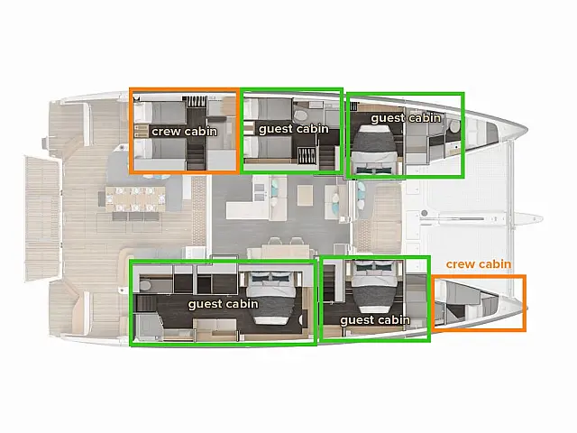 Captain: 0.00 € per night, Stewardess (Daily preparation of 2 meals: breakfast and SIMPLE lunch): 0.00 € per night, Comfort package D 2026 (includes final cleaning, bed sheets, bath & hand towels, beach towels, tea towels, 10 coffee pods, shampoo & shower gel and soap, dish soap & sponge, garbage bags, toilet paper, wine diver's inspection upon check-out: 720.00 € per booking, APA deposit (Advance Provisioning Allowance): 8,000.00 € per week, Croatian Tourist Tax (1.33 € per person/night): 1.33 € per person/night