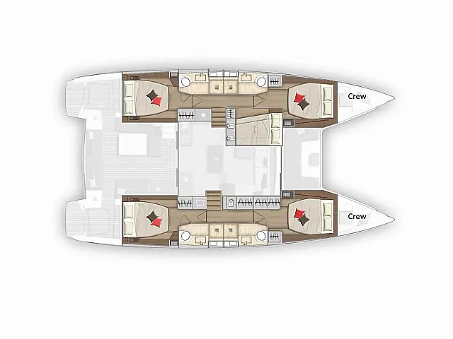 | Cabins: | 5 (4 double +1 single) + 2 skipper's cabins |